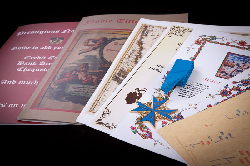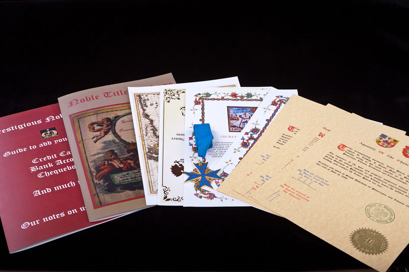 In order to get your title of Lord or any other title, just browse our website, have a look, see the wonderful pictures of the documents, folders, guides and medals that we send, and all will be easier for you. Hopefully, you will have discovered a little new world, old and ancient, in which tradition is still important, and certain social values still matter. If you want to become a nobleman, this is your chance!